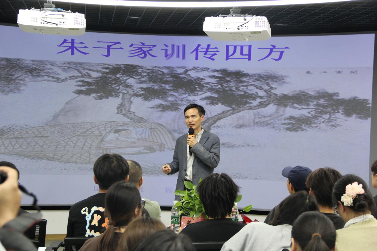居永良从昆山本地的传统文化“朱子家训”入手,逐渐带入昆山书法,讲述昆山本土传统美学中的书法部分的发展与文化内涵;普及了昆山书法的历史知识与现代发展,传授了“朱子家训”待人处世、律己修身的行为规范,另外还展示了很多古现代案例,全方位、多角度地向学生们展示了昆山传统美学的独特魅力,体现了对传统与经典的致敬。