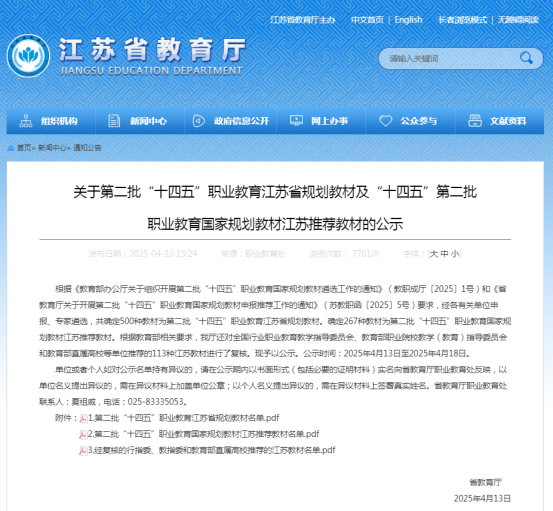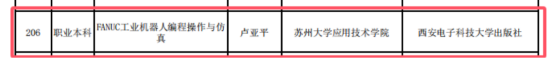 近日,江苏省教育厅对第二批“十四五”职业教育江苏省规划教材及“十四五”第二批职业教育国家规划教材江苏推荐教材结果进行了公示,共确定500本教材为第二批“十四五”职业教育江苏省规划教材,其中,我院卢亚平老师主编的《FANUC工业机器人编程操作与仿真》教材成功入选。至此,我院省级规划教材增至2种,其中本科高校省级规划教材1种——郭占苗等老师主编的《数字电子技术》,职业教育省级规划教材1种——卢亚平老师主编的《FANUC工业机器人编程操作与仿真》。