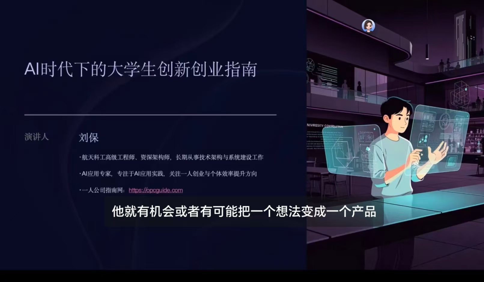 讲座伊始,朱志强介绍了当前AI技术背景下“一人公司”(OPC)创业模式的兴起背景。他指出,随着人工智能技术的快速发展,大学生创新创业迎来了前所未有的机遇。OPC作为新兴创业模式,自去年以来在国内迅速升温,现已作为独立赛道进入多项创新创业赛事。