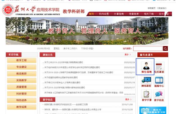 1.进入学院主页http://tec.suda.edu.cn,打开教学管理。