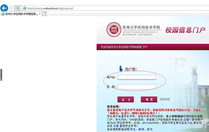 3.登录学院数字化校园门户,如下图: