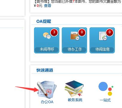 4.进入数字化校园门户,和在学院内操作OA一样,点击进入OA即可。如下图: